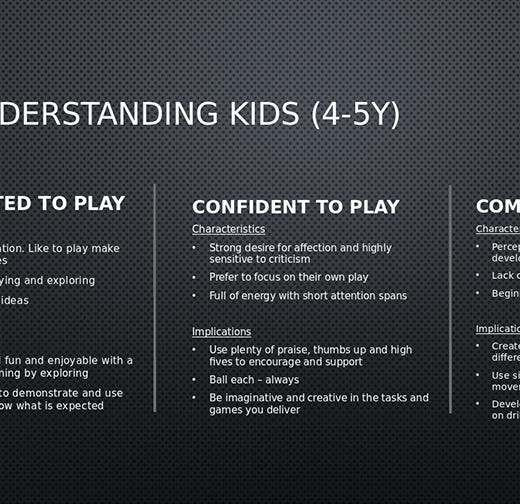 Coaching young children requires us to adapt to the specific age group we are working with. Pav Funball Academy shared a few slides explaining how to do this: